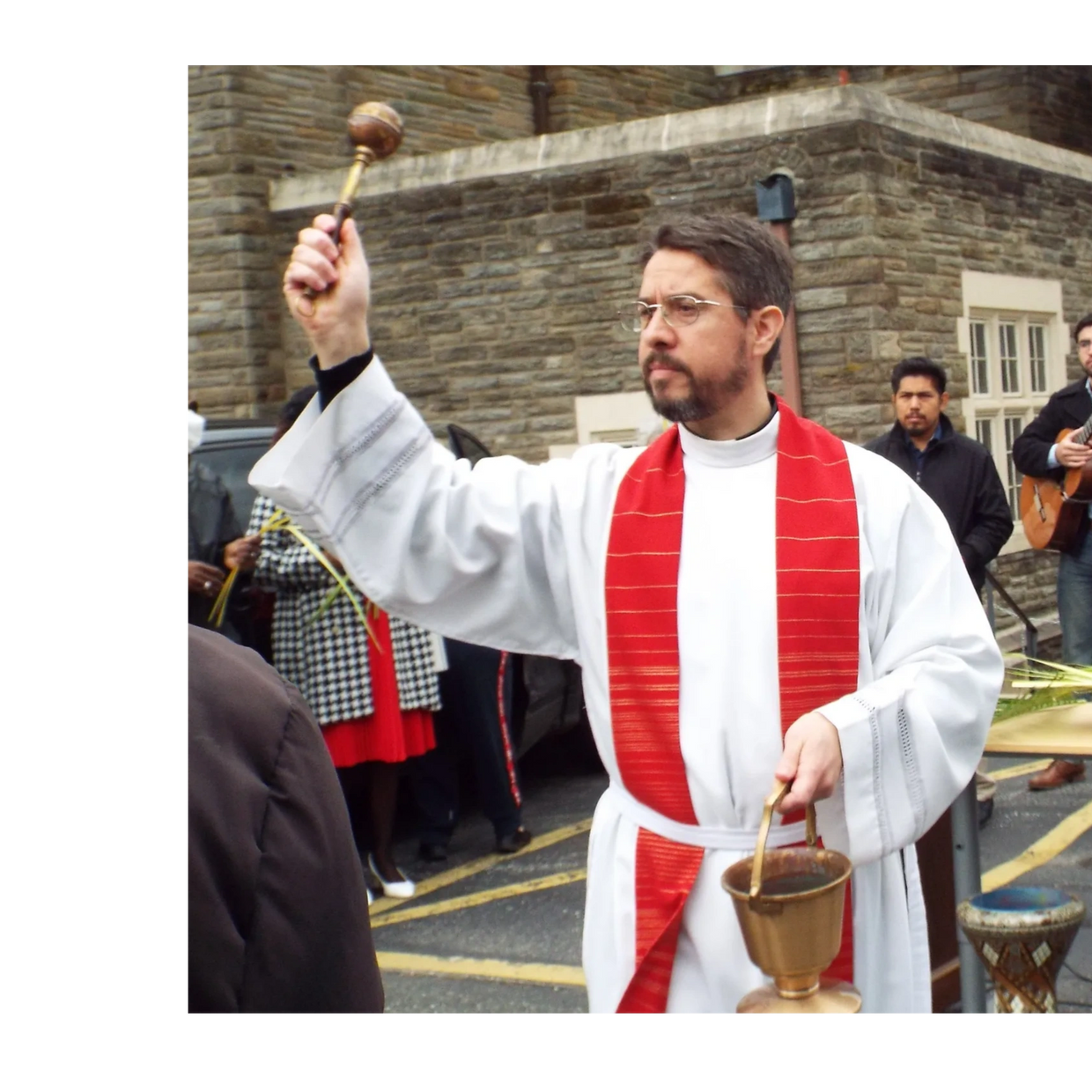 This was indeed a wonderful experience. There were about 100 parishioners and others who processed singing "Hosanna" and waving palms. The Darby Police and Darby Fire Company were there to add to the moment.